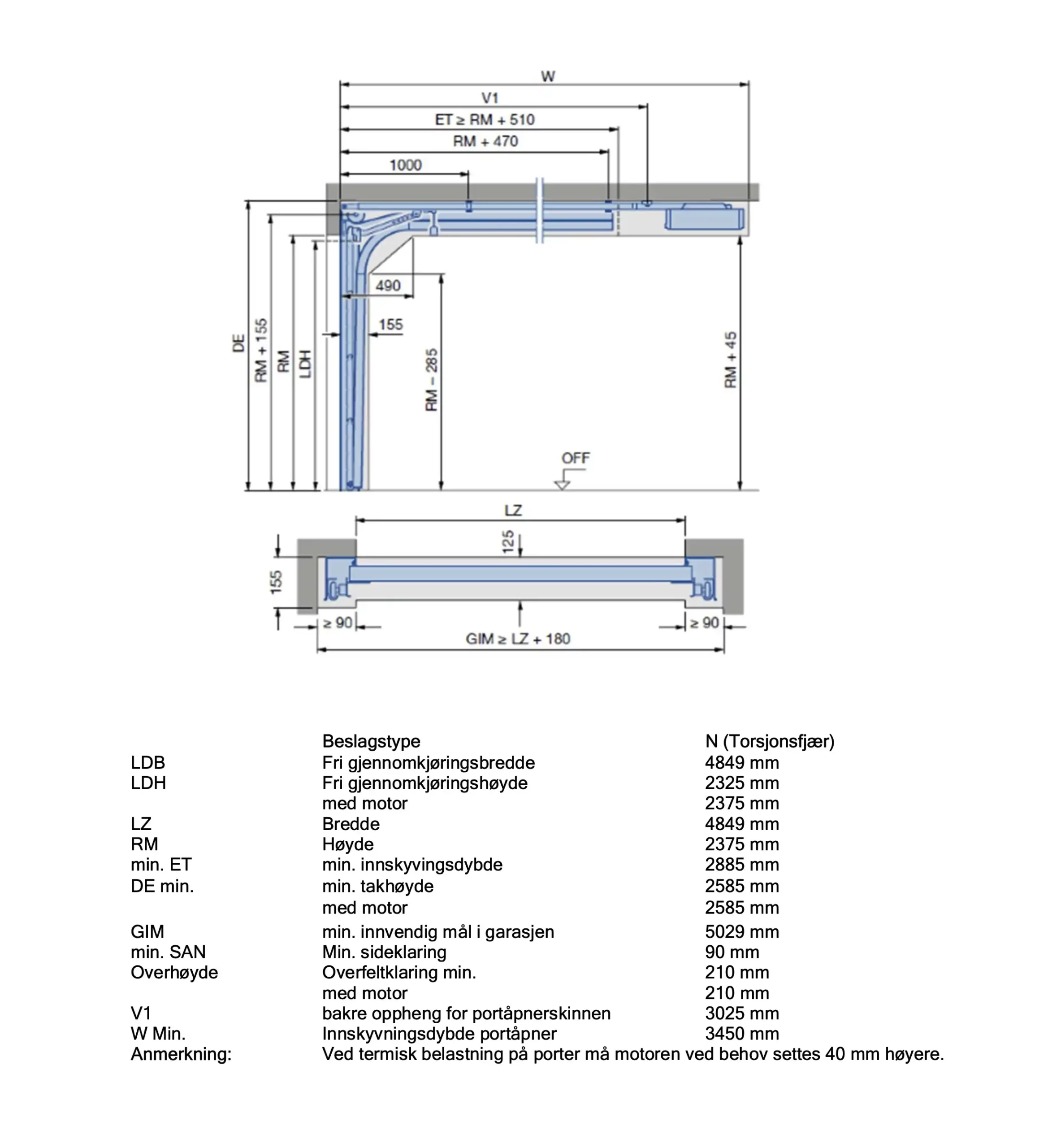 - Mål B: 4849mm x H: 2375mm